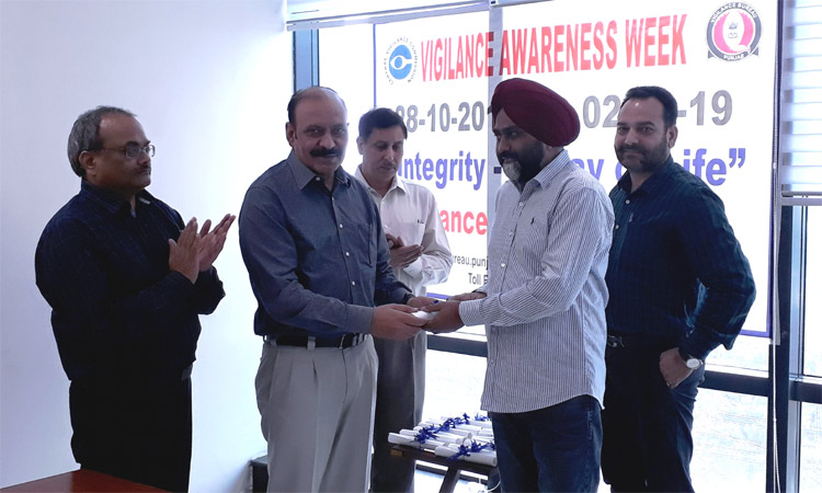 ਵਿਜੀਲੈਂਸ ਜਾਗਰੂਕਤਾ ਹਫਤੇ ਦੌਰਾਨ ਰਿਸਵਤਖੋਰਾਂ ਦਾ ਪਰਦਾਫਾਸ ਕਰਨ ਵਾਲੇ 24 ਵਿਅਕਤੀ ਵਿਜੀਲੈਂਸ ਬਿਓਰੋ ਵੱਲੋਂ ਸਨਮਾਨਿਤ