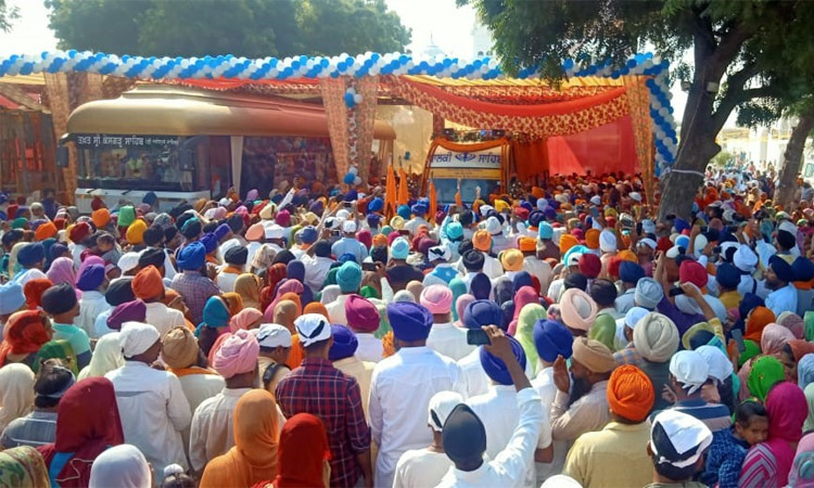 ਅੰਤਰਰਾਸ਼ਟਰੀ ਨਗਰ ਕੀਰਤਨ ਹਰਿਆਣਾ ਸਥਿਤ ਗੁਰਦੁਆਰਾ ਧਮਧਾਨ ਸਾਹਿਬ ਤੋਂ ਖ਼ਾਲਸਈ ਜਾਹੋ-ਜਲਾਲ ਨਾਲ ਅੱਗੇ ਰਵਾਨਾ
